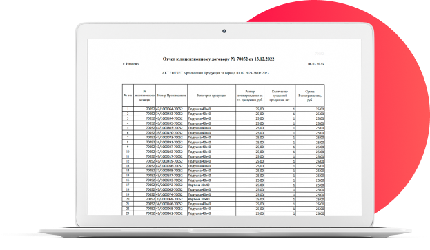 Каждый месяц отправляем на подпись акт-отчёт о продажах всех товаров с вашими дизайнами.