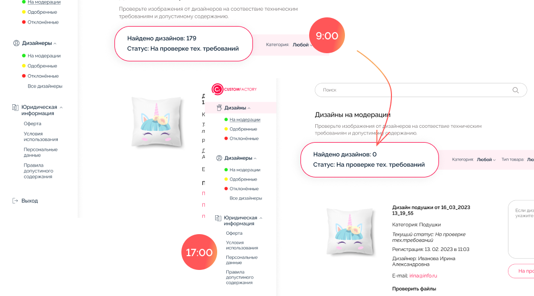 Модерируем дизайны максимально быстро:в среднем 150-200 дизайнов за 8 рабочих часов.